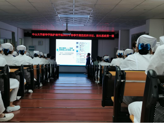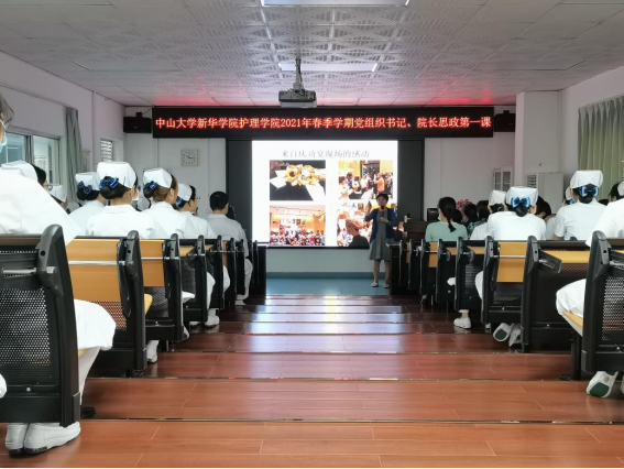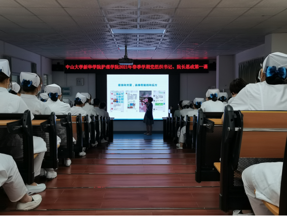 2021年4月2日,中山大学新华学院永利集团3044欢迎你全体教师、2018级和2020级学生在护理实验实训中心示教室参加了由王秀岚院长主讲的中山大学新华学院永利集团3044欢迎你2021年春季学期党组织书记、院长思政第一课。