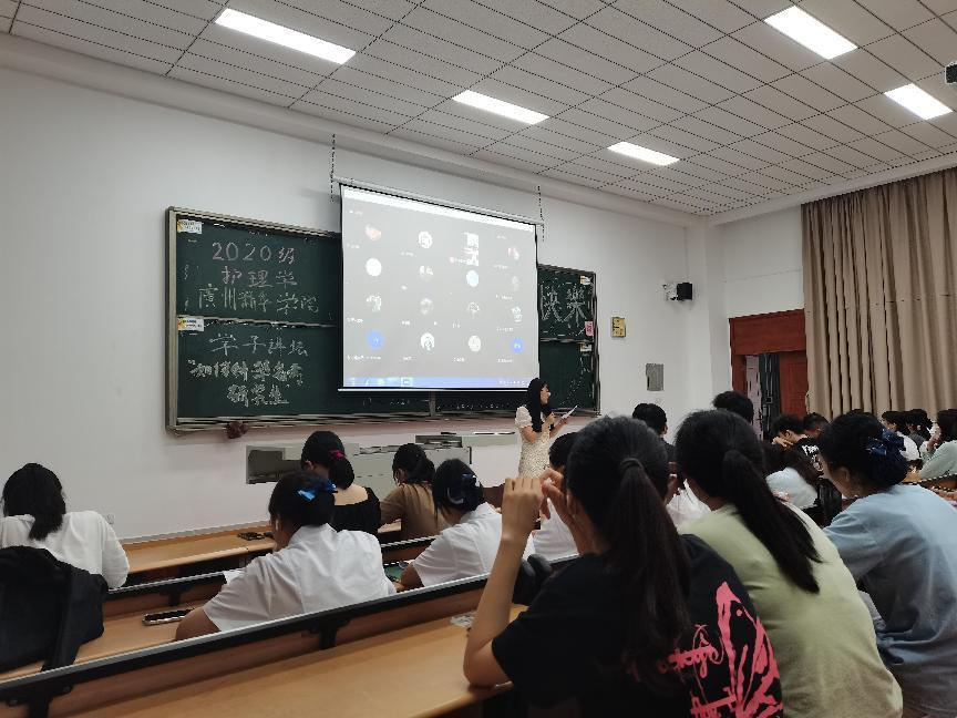 接下来进行分享的是19级护理A班的朱雯惠师姐。师姐详细地按“如何开始确定考研到如何选择考研院校以及该如何科学备考”这一备考研究生的大纲分享了自己的一些备考的经验,也很细致地向同学们分享了自己在实习期间是如何备考、我们应当怎样合理安排自己的时间来进行备考、备考可以通过网上的哪些课程协助备考、备考期间的心态要如何调整等的经历经验,也针对一些备考的问题提出了自己的建议,事无巨细。在分享完经验后师姐还给同学们留了答疑环节,积极与同学们互动,并且对有考研想法的同学给予了肯定以及鼓励。