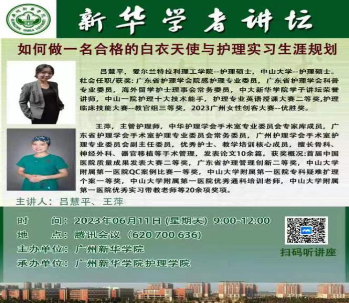 由于20级护理学专业的学子即将步入医院实习,为了让20级护理学专业的同学们提前做好护理实习生涯规划,更好地面对实习生活,2023年6月11日上午9点在腾讯会议召开如何做一名合格的白衣天使与护理实习生涯规划的线上会议,此次会议由何洁凝老师、曲楠楠老师主持,吕慧平师姐主讲,王秀岚院长和20级全体同学共同参与。