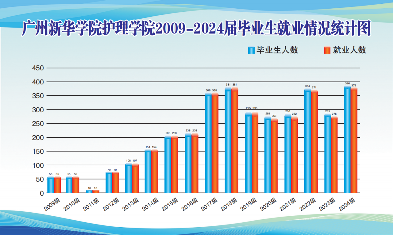 我院护理学专业创办于2005年,已向社会输送16届本科毕业生共3549人,是永利集团3044欢迎你最早开设的专业之一,也是学校招生、就业最热门的专业之一,下设护理学专业,毕业生99.6%以上通过了护士执业资格考试,一次性就业率达到100%,在学校各专业毕业生就业率排行榜连续15年获得冠军。96%以上毕业生就职于省内三级以上医院,受到各用人单位的欢迎。