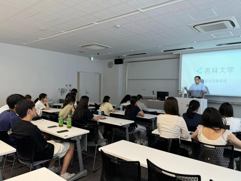 第三站来到杏林大学,作为以医学为主的日本富有盛名的私立大学,杏林大学刘迪教授为学生们深入剖析了公共卫生院的情况,包括其历史沿革、教学设施、师资力量以及未来发展规划。同时,他详细阐述了课程设置,从基础理论到临床实践,再到前沿研究,每一环节都展现了杏林大学在公共卫生领域的深厚底蕴。此外,刘教授还介绍了学院的研究方向,特别是针对当前全球健康挑战所开展的创新性项目,激发了学生们对未来学术探索的热情。