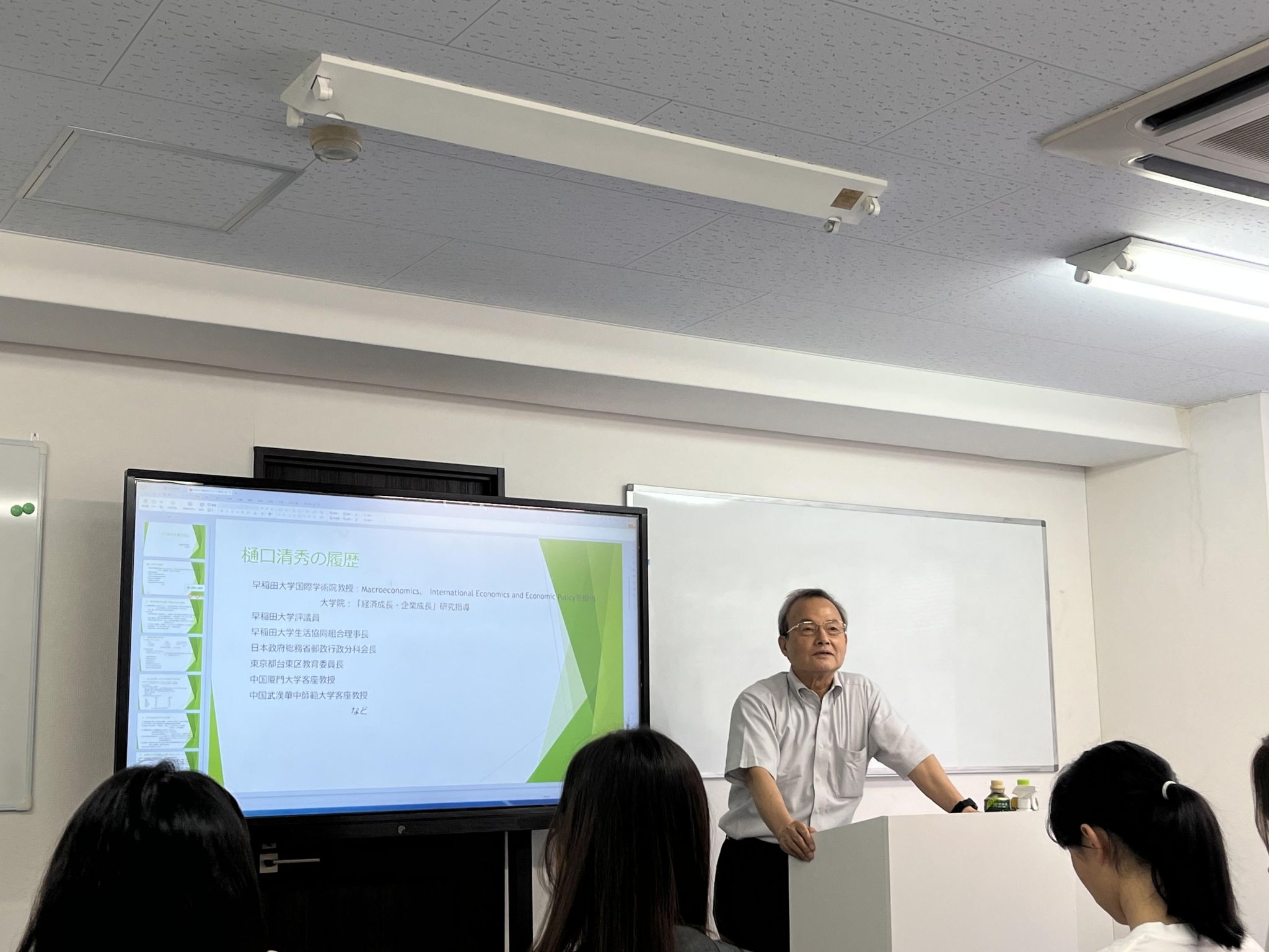 研学之旅以早稻田大学为起点,开启了一场引人入胜的学术盛宴。在这里,学生有幸聆听了早稻田大学国际学术院的樋口清秀教授所作的精彩讲座——《日本企业的经营特征》。樋口教授首先强调了企业经营的首要目标是提供卓越的产品与服务,其次才是从中获取利润,并致力于开发能够为人提供服务的新产品。面对人口老龄化的挑战,日本社会通过发展机器人技术和智能养老解决方案来替代传统的人力服务。学生们积极参提问与讨论,尤其对日本的健康产业和养老问题表现出了浓厚的兴趣。他们与樋口教授就健康寿命产业的发展进行了深入的交流与探讨,这一过程对护理学专业的学生来说具有重大的启发意义。