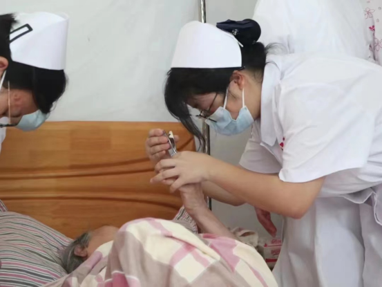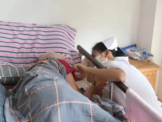 第一位奶奶是一位老护长,在我们为她洗头时,她十分地配合我们。而且她时不时就和我们说“谢谢”,这个小小的词语汇成了一股暖流,温暖了我的内心。此过程中,由于我们先为她穿上了新衣服再为她洗头,她提醒我们操作的顺序错了。这是一位老前辈对我们这些新人的教育与提醒。而第二位奶奶给我最直观的感受是在换药时她就像是一个没有依靠和安全感的小女孩。她换药的过程中因疼痛难忍发出呻吟并且整个身体蜷缩在床上,此刻的她急需人们来给予她安慰。看着这一幕,我想,虽然我以后对于这些老人来说只是一个照护他们的医护人员,但是我希望我能够通过自己的努力,用耐心以及细心,来给予她和像她这样的老人满满的安全感。