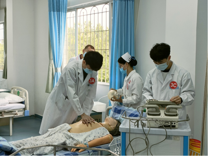在本次比赛中,选手们精神抖擞、有条不紊地进行各项操作,展现了护理人员出色的应急能力、批判性思维、人文关怀及心理素质。评委老师们细心严谨、认真负责地观察同学们的每一个细节,进行严格、公平、公正的评分。比赛过程严谨有序,气氛紧张热烈。