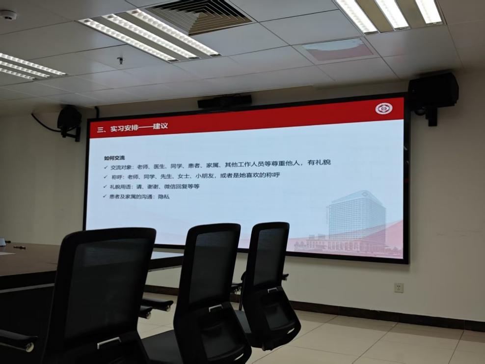 在报到日的下午两点半,全体实习生在1号楼29楼的3号会议室正式进行报到,并由护理部李爱华护长主讲开展了实习生的岗前培训。会议伊始,护理部李爱华护长首先介绍了医院概况及护理部人员介绍,让每位实习生能够迅速熟悉医院布局,树立主人翁意识。随后,她讲解了医院的管理制度,从劳动纪律、日常工作、着装要求、职业防护、请假制度、处罚制度等多方面进行,鼓励我们珍惜实习机会,结合理论与实践,提升专业技能。最后,护理部李爱华护长给了实习生们实习生活的实用建议,提醒实习生们从熟悉人到熟悉环境,保持仪容仪表整洁,主动学习,培养自学能力。