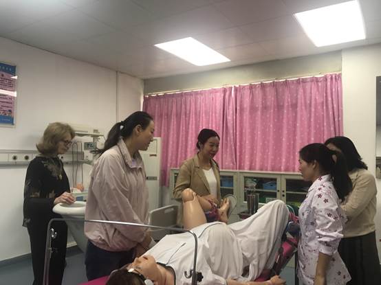 上午11点整,在我院实验室主任黄廷芬的引领下,于凤兰书记、Susan教授以及陈千副院长带领江门市中心医院的二位老师参观了我院护理实验实训中心。黄静副主任高度评价我院护理实验实训中心的设备和规模比较先进、齐全,为学生创造了非常好的实训条件,并对我院实验授课所需的医疗器械方面的问题给出了建议;同时还由衷赞赏了我院实训室文化长廊对学生职业认同感和人为素质方面的培养。