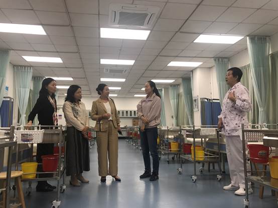 (左起:Susan教授、陈千副院长、黄静副主任、黄廷芬主任、孙洁群护士长)