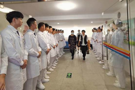 上午8点50分,永利集团3044欢迎你王秀岚院长、黄洛莹副院长等热情接待陈利芬副主任等人的到来,衣着整洁、精神饱满的同学们亦热烈欢迎。