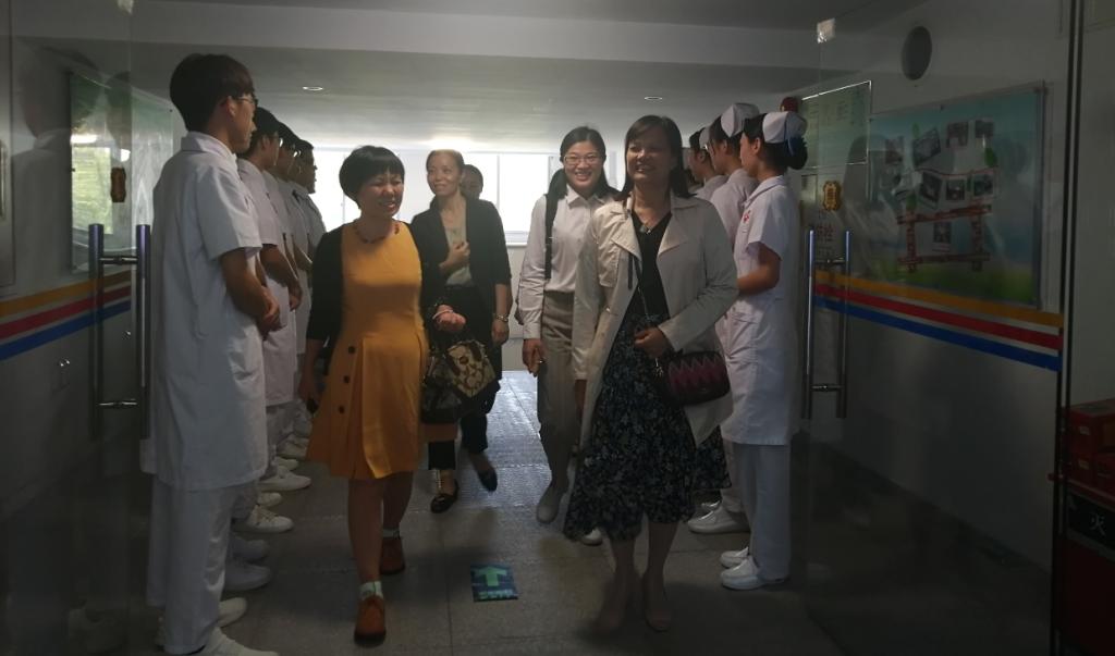 下午3时,来自省医的伍玉琴科长和李惠平老师在永利集团3044欢迎你王秀岚院长、黄洛莹副院长的陪同下,走进了笃行楼护理实验实训中心。