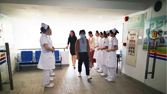 上午九点十五分整,周丽平护士长和陈丽珊老师在永利集团3044欢迎你林丽娜老师的陪同下到达护理实验实训中心,同学们齐齐高声问候,老师们也热情地回应同学们。