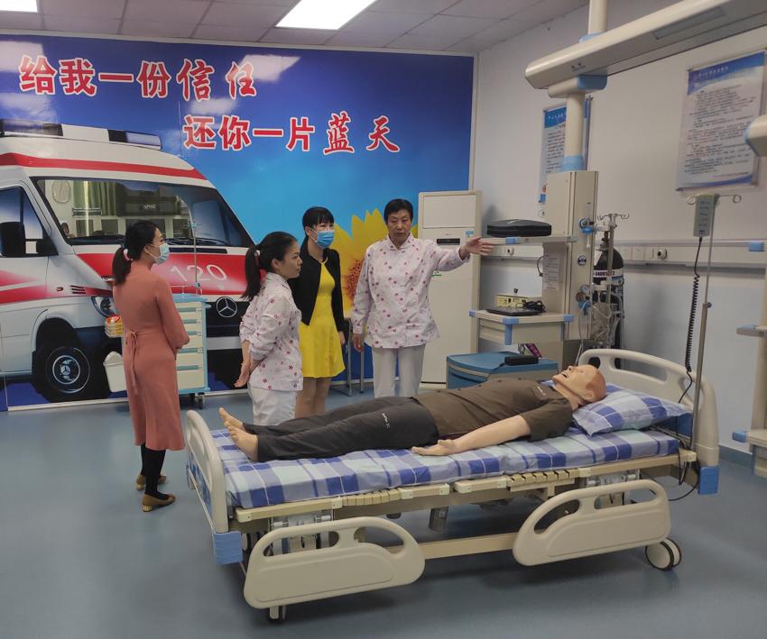 随后,我院党总支书记于凤兰、护理实验实训中心主任黄廷芬、办公室主任周玲陪同陈护长、区老师参观了护理实验实训中心。
