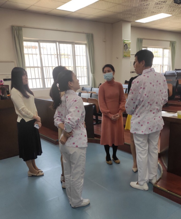 上午9:30,陈秋玉护士长和区冠玉老师准时到达。党总支书记于凤兰、护理实验实训中心主任黄廷芬、办公室主任周玲及何洁凝老师等热情接待了陈护长、区老师,同学们抖擞的精神风貌也获得了二位老师的赞赏。面试开始前,陈护长与学院老师们就本次面试同学的学习情况、招聘方式、要求等作了详细交流。