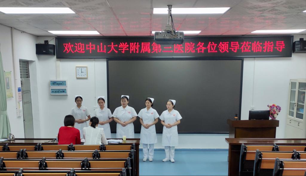 2020年11月6日下午3点整,樊萍护士长和刘芳护士长准时到达笃行楼护理实验实训中心。参加面试的同学分列在楼道两侧,对中山三院面试官的到来表示热烈的欢迎。