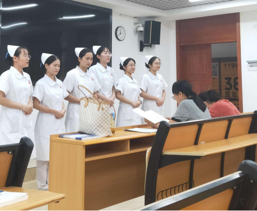 同学们身着护士服,以最自信的姿态面对此次模拟面试。每人通过一分钟的自我介绍,展现出在校期间所获荣誉以及丰富的社会生活。一组同学自我介绍完毕后,郭运芳老师和梁家翠老师针对每个同学自我介绍和简历进行点评和修改。