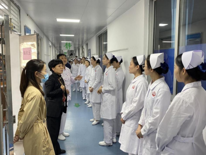 王秀岚院长、于凤兰书记和何洁凝老师与省医伍玉琴科长和陈秀梅护士长交流