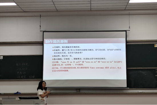 图1 宋秀秀老师向同学们讲解简历中存在的问题