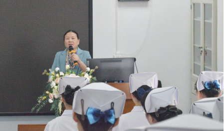 笔试结束后,中大附七护理教研室叶晓青主任走进课室,向同学们简要介绍了医院的基本情况、特色科室以及优越的地理位置等。同时也不忘给紧张备战的同学们加油打气:“中大附七是一个充满机遇与挑战的平台,希望大家能在这里绽放光彩,面试时不要紧张,展现最好的自己。”