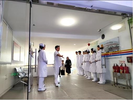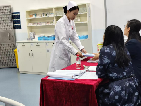 在面试过程中,同学们分成小组依次进入面试教室。他们自信地进行了自我介绍,并回答了区秀丽副主任和欧仲爱护长提出的问题,这些问题包括学习情况、工作经历以及对江门市中心医院的了解程度。同学们详细地介绍了自己的专业背景和学习成果,不仅展示了同学们的专业知识和技能,也体现了他们对护理事业的热情和对未来工作的期待。