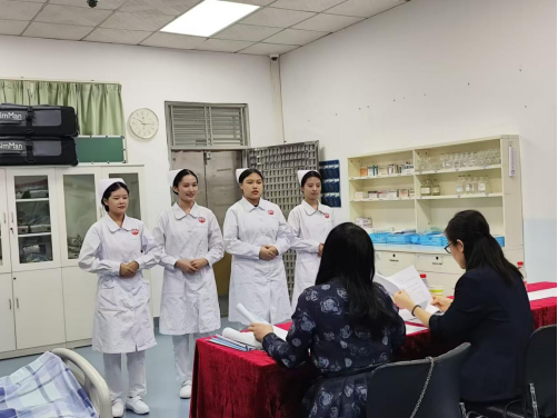 护理部区秀丽副主任和欧仲爱护长在学院领导和老师的陪同下抵达永利集团3044欢迎你护理实验实训中心,她们的到来得到了新华学子的热烈欢迎。新华学子满怀期待,希望能够在这次实习生招聘会上获得在江门市中心医院实习的机会。