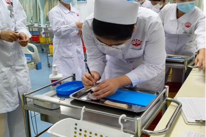 在护理技能考核环节,考核项目为皮下注射,同学们通过认真且细致的操作,充分展现了他们专业技能和坚实的基本功。