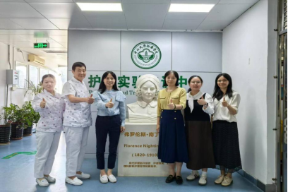 图一 护理部颜梅主任和施宝玲老师抵达实验室