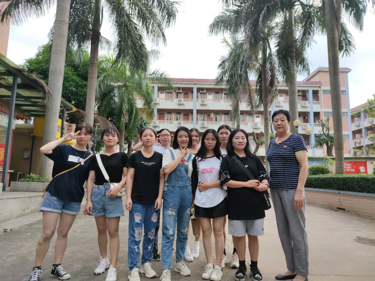 图为于凤兰老师与实习生们合影留念