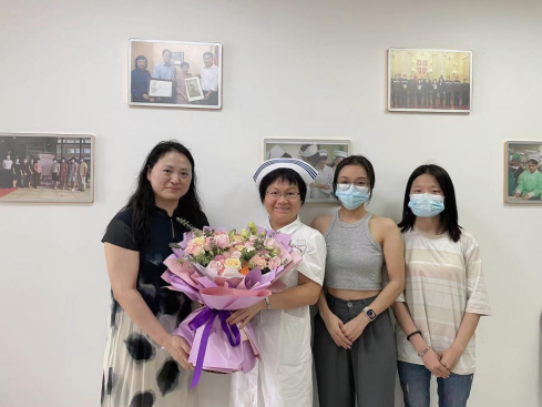 6月25日早上11:30分杜颖君、卢梓英两位同学和林丽娜老师在中大惠亚门诊部集合,随后,在林丽娜老师的带领下到护理部办理了报到手续,并和护理部吴婉玲主任进行了合影,主任对我们的到来表示欢迎!