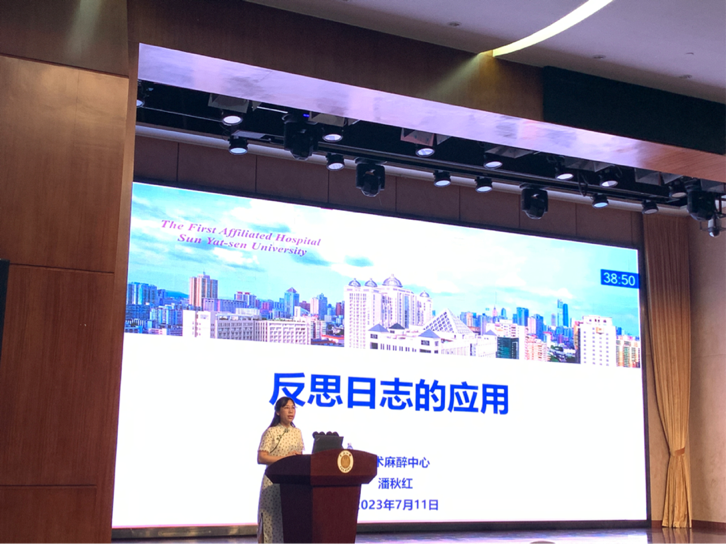7月13日下午,由各校学生代表介绍学校情况。我校由中大附一的实习组长曾文琪作为学生代表,向同学们和老师们介绍了我校基本情况、学院简介、中大附一实习团队以及实习展望。