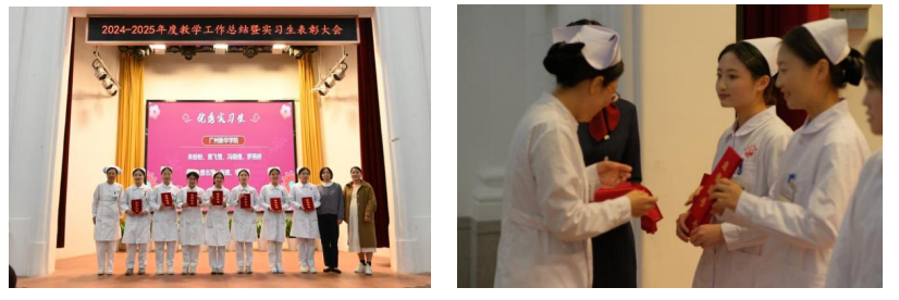 护理部领导护士长代表以及黄洛莹副院长和黄珍霞老师为同学们颁发了荣誉证书,表彰在实习期间的优异表现。她们在专业技能上表现突出,在医德医风、团队协作等方面树立了良好的榜样。