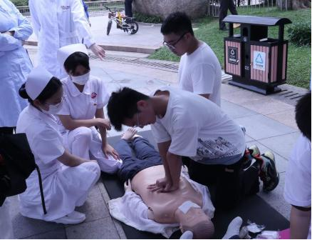 “感谢有你们的帮助,你们的健康服务活动很好,让我了解了一些健康问题和如何去预防疾病。”这是一位中年妇女对此次活动的评价;“学习这个心肺复苏,我才知道,原来要使这么大劲儿呢,佩服你们这些女孩子!”这是一位青年人在学习心肺复苏时的感慨;“你们的这个推拿按摩很舒服,力道也挺好的,下次我还要再来。”这是一位阿姨享受着按摩时满怀笑意的一句话语。一声声赞美传入志愿者的耳畔,志愿者脸上都洋溢着灿烂的笑容,纷纷表示虽然很疲惫,但觉得很满足。