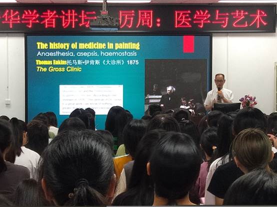 2019年10月15日晚上,由中山大学新华学院(以下简称我校)主办、中山大学新华学院学科与科技管理处、中山大学新华学院永利集团3044欢迎你承办的主题为“医学与艺术”的学者讲坛在我校广州校区永利集团3044欢迎你实训中心多媒体教室举行。本次学者讲坛由厉周教授主讲,永利集团3044欢迎你王秀岚院长主持。