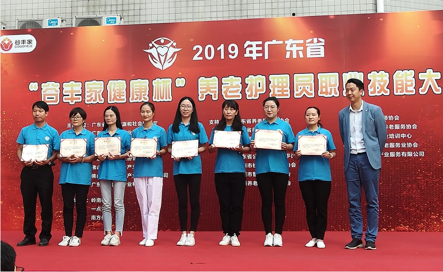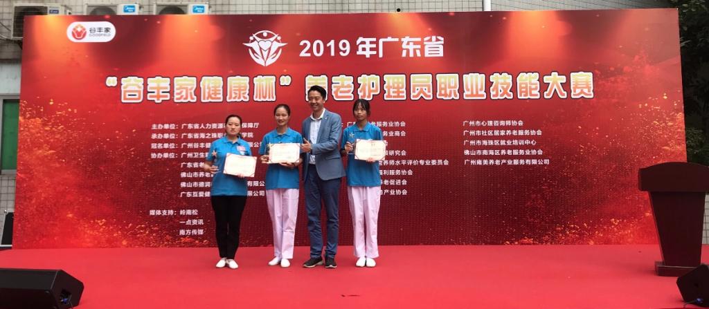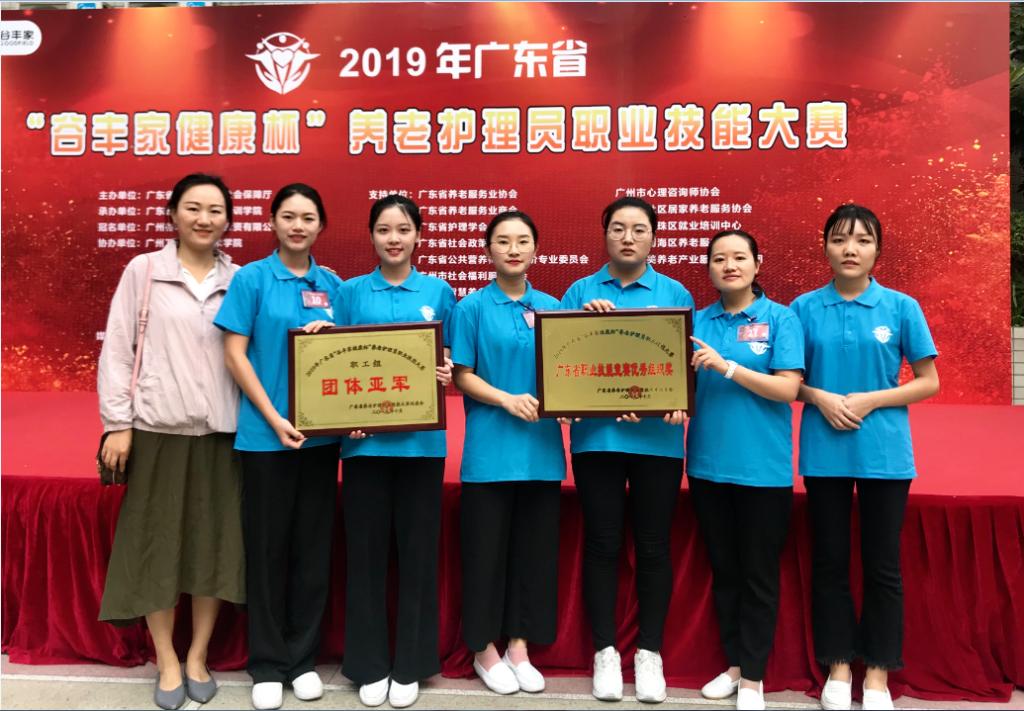 2019年10月30日,2019年广东省“谷丰家健康杯”养老护理员职业技能大赛在广东省广州卫生职业技术学院成功举办。此次大赛由广东省人力资源和社会保障厅主办,由广东省海之珠职业培训学院承办,大赛聚集了包括我校在内一共72名参赛选手,由职工组48人及师生组24人组成。经过两天的激烈角逐,我校最终荣获师生组团队亚军和广东省职业技能竞赛优秀组织奖,沈怡老师、林晓鸿老师荣获优秀教练奖,林晓鸿老师获师生组个人季军,黄洁蓬同学获师生组个人第七名的佳绩。