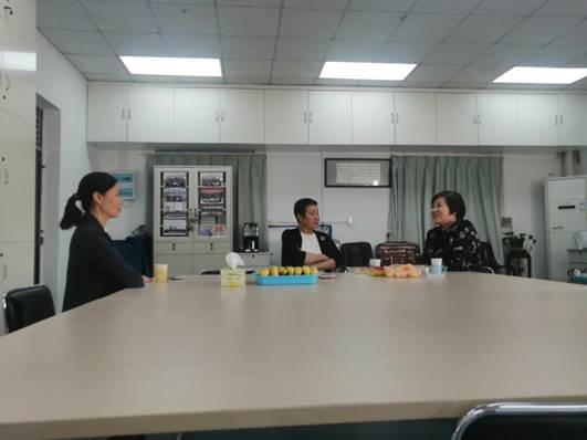 图2:党总支书记于凤兰、办公室主任黄洛莹与医院护理部副主任俞玲娜交谈中