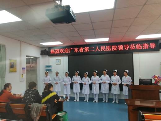 14点30分,广东省第二人民医院(广东省应急医院)护理部副主任俞玲娜、护士长李琴及张英老师一行三人在我院办公室主任黄洛莹、学生办公室副主任林琪心、2017级辅导员邓钥琼老师等的陪同下走进了护理实验实训中心。