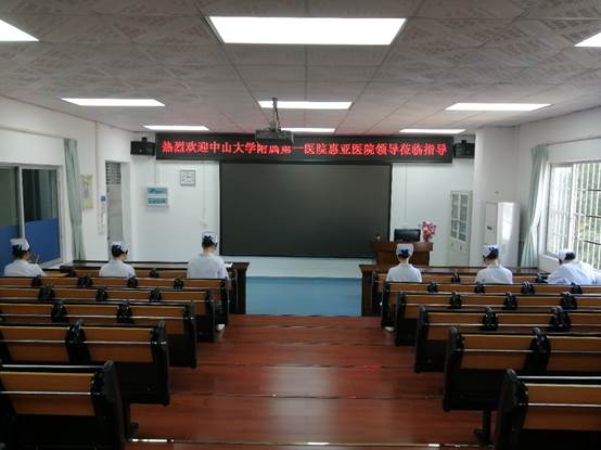 在我院办公室主任黄洛莹、17级护理辅导员邓钥琼等老师们的陪同下,惠亚医院的夏冬梅护士长笑容满面地出现在同学们面前。