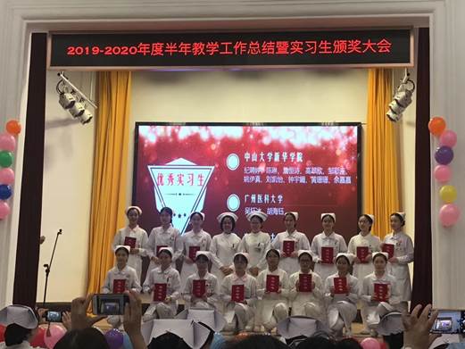 第二个环节是科护士长、护理部主任对优秀实习生、2019年教师节贺卡制作大赛、第六届实习生操作技能大赛的获奖者进行颁奖,在这一环节中,我校大部分实习生都是获奖者。