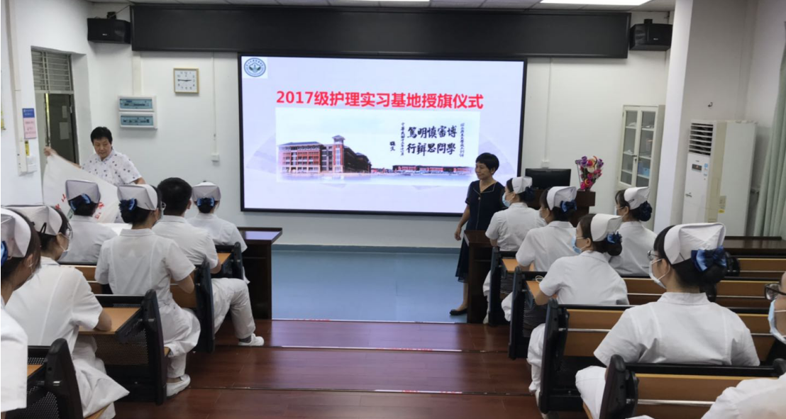 接着,进行了各实习基地的院旗交接仪式。院旗交接仪式是我院保持多年的优良传统之一,该仪式,不仅对提高护理实习生的职业素养和职业获得感起到激励作用,而且对传承和发扬我院优秀的实习传统、职业精神和工作作风发挥促进作用。通过此次会议,我院护生为即将开始的为期40周的实习生活做好了充分准备,为将来称为一名优秀的护士奠定了基础。