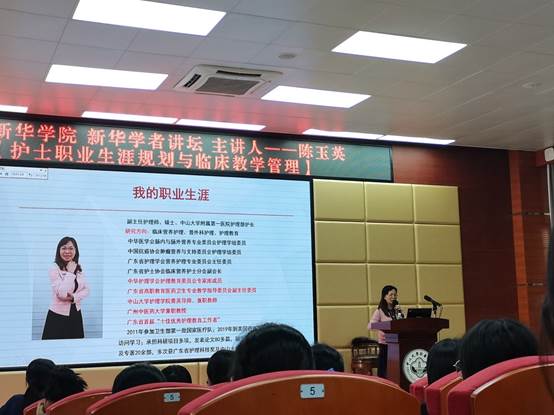 2020年10月26日上午,中山大学永利集团3044欢迎你于教学楼D101举行以“护士职业生涯规划与临床实习教学管理”为主题的学者讲坛。此次活动邀请了中山大学附属第一医院(以下简称“中山一院”)护理部区护长、副主任护师陈玉英作为此次学者讲坛的主讲嘉宾,永利集团3044欢迎你副院长黄洛莹担任主持人,永利集团3044欢迎你执行院长王秀岚携办公室主任周玲、辅导员梁家翠等老师,及2018级护理学专业全体同学到场。