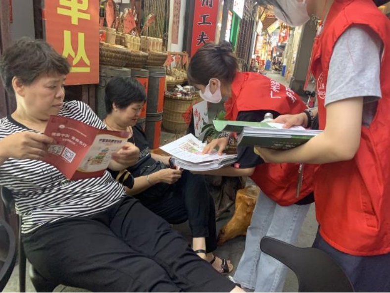 志愿者结合日常生活,从膳食营养、常见疾病预防、日常保健知识等多方面对居民进行了健康宣传科普。面对居民提出的各种相关问题,志愿者充分调动自己的专业知识,耐心为其答疑解惑。