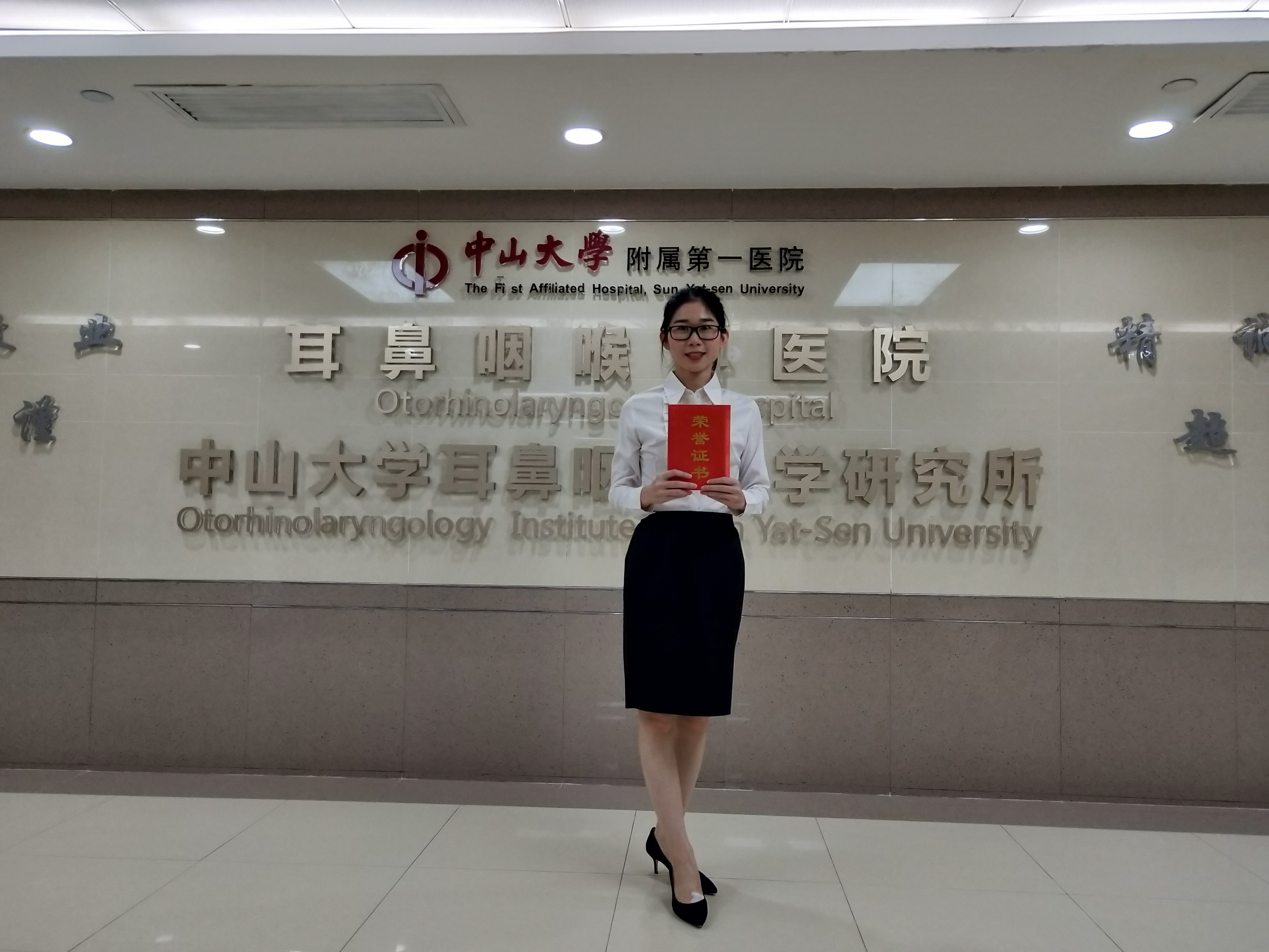 王嘉敏,2015年6月毕业于中山大学新华学院医学系(永利集团3044欢迎你前身),在中山大学附属第一医院(以下简称“中山一院”)实习后被聘用,现任中山大学附属第一医院耳鼻喉科护士。在2018年中山大学附属第一医院青年教师授课大赛中全英组护理部第一名,全院第二名。