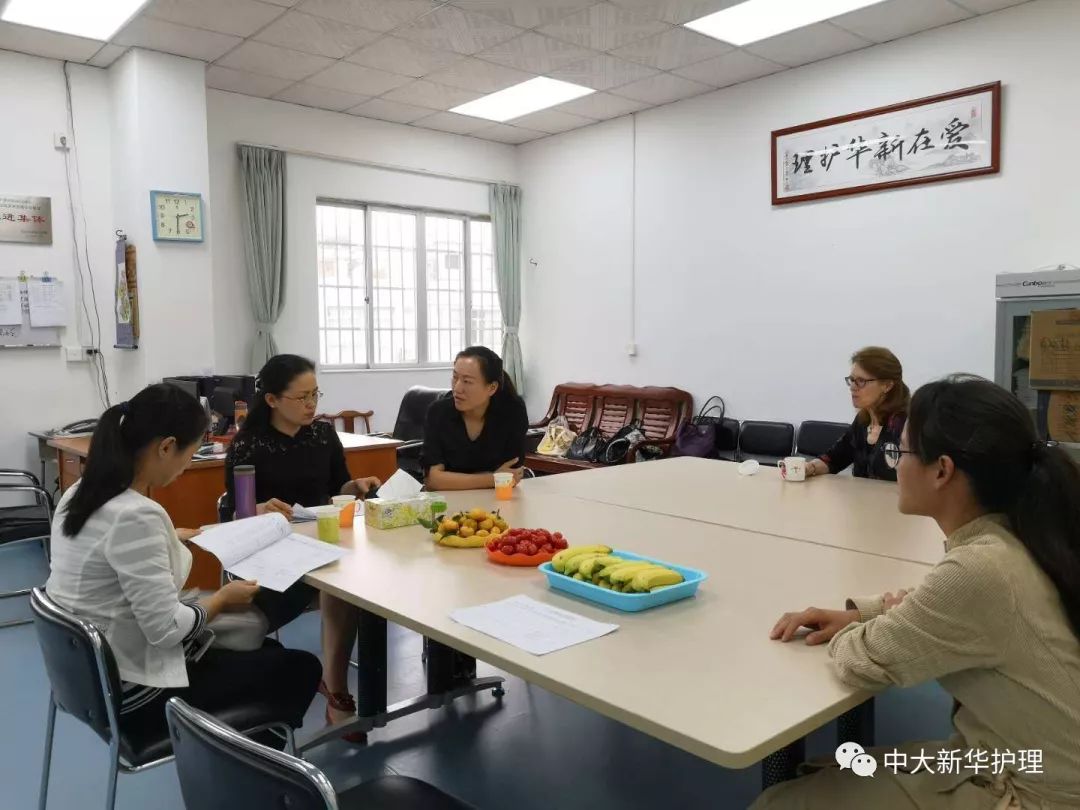 来自岭南医院护理部的余婷总护长、杨雯护长和唐财兴老师,在于凤兰老师、黄洛莹老师及永利集团3044欢迎你各位辅导员、教务员老师的陪同下走进了护理基础实验室。随后,在接待室里,我院副院长陈千老师、Susan教授、于凤兰老师等分别和岭南医院的老师进行了亲切交谈。
