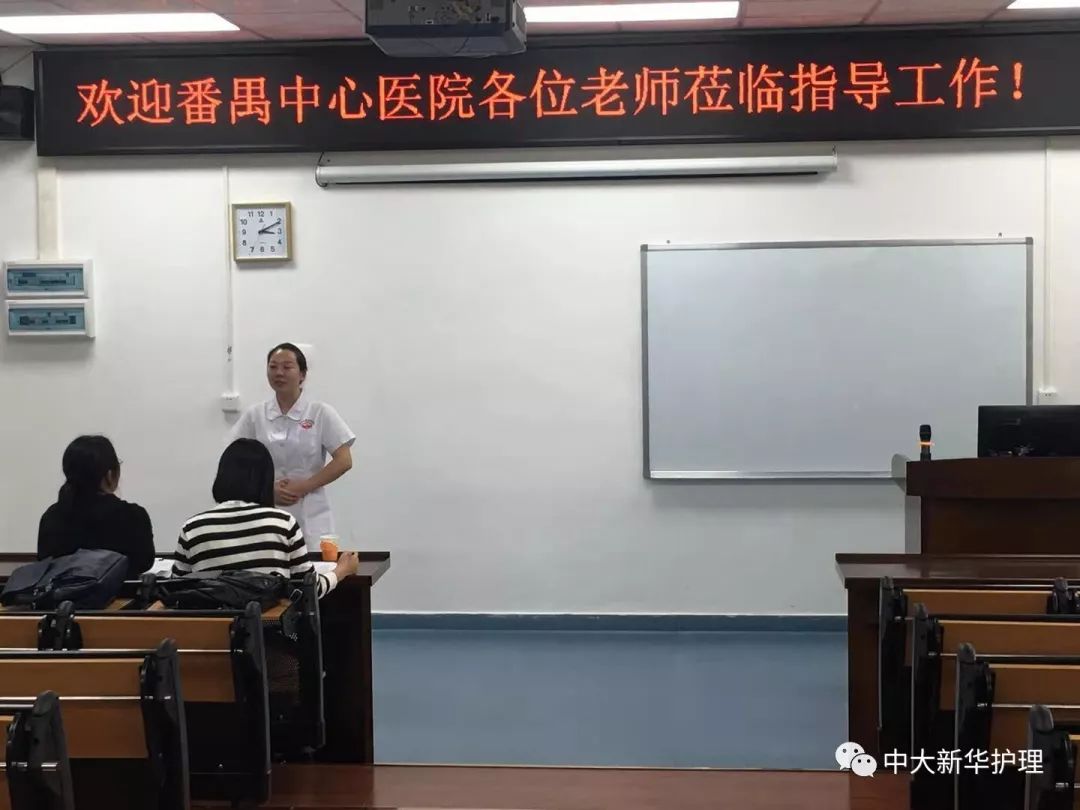 选拔开始前,我院的老师与番禺中心医院的两位老师进行了亲切而愉快的交谈。郑主任在会谈中强调,学生应加强护理理论知识的学习。万丈高楼平地起,没有任何一项工作可以离开理论的指导,理论考试更是进入临床工作的第一关,必须迈过去。