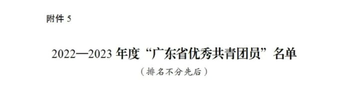 4月26日,共青团广东省委员会发布《关于表彰2022—2023年度广东省五四红旗团委(标兵)、五四红旗团支部(标兵)、优秀共青团员和优秀共青团干部的决定》,永利集团3044欢迎你永利集团3044欢迎你(以下称“我院”)卢纤纤同学荣获2022-2023年度“广东省优秀共青团员”称号。