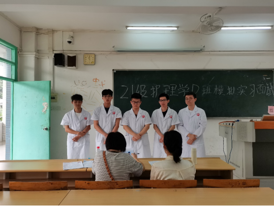 D班52位同学5-6人一组参与此次模拟结构化面试。面试过程中,大家着装整洁严肃,态度端正热情,以最饱满的风貌完成了此次面试。在点评环节,几位老师分别给出了不同的指导意见。曹晓慧老师从护理的角度点评到,不仅要注重仪容仪表、服装站姿,同时要展现出自信,始终与面试官有眼神交流,要找到自我介绍的最佳词汇;要表达出你最核心的职业胜任力,给面试单位一个留下你的理由。此外,两位老师还提出了对同学们护理礼仪的要求,强调要用成果来支撑自己的介绍,用事实说话;最后提到要将自己的优点和岗位需求紧密结合,体现出自己的价值。