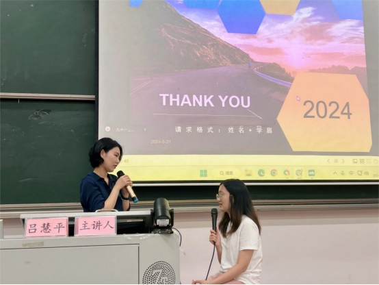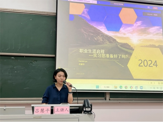 吕慧平校友还以自己的工作历程为例,分享了在就业道路上的艰辛与收获。她坚信“风雨过后必见彩虹”,鼓励同学们勇敢面对挑战,积极寻求机遇。同时,她还结合实习期间的亲身经历,传授了如何在实习过程中实现个人成长与蜕变的宝贵经验。她还提到,在实习过程中要时刻保持端正态度,铭记自己身上的重任;要回归课本,巩固拓展知识;要学会调整心态,积极应对挑战。这些经验对于即将踏入实习岗位的学子们来说具有重要的指导意义。