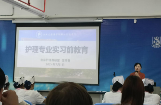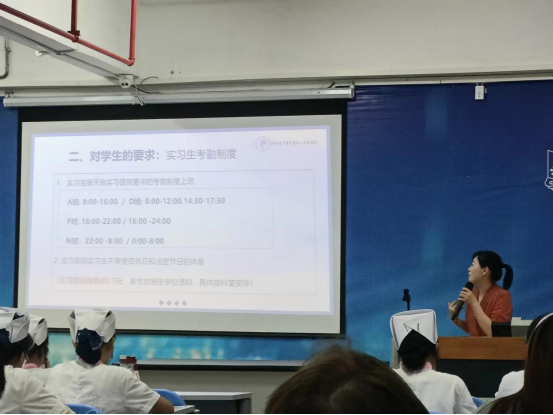 7月1日上午8:20至11:00,医院为护理实习生开展为期半天的岗前培训会。培训内容分为医院介绍和护理工作介绍、护理专业实习前教育三大部分,分别由医院教学科李老师,护理部副主任护师郭郁莲、伍艳春两位老师进行介绍。第一部分李老师首先向我们发放了工牌,紧接着向我们介绍医院的概况、各科室分布,以及实习教学管理制度等。