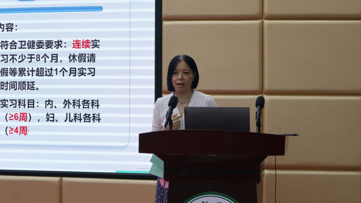 接下来,黄洛莹副院长为同学们详细解读实习手册及各项重要注意事项。实习手册是大家实习生活的“行动指南”,黄洛莹副院长逐条深入讲解其中的关键内容。从实习目标与任务,到实习期间的考核标准;从在医院各个科室的工作规范,到与患者、带教老师及医护团队的沟通协作要点,都一一进行细致阐述。此外,她还着重强调实习过程中的安全问题,包括医疗安全、人身安全等,让同学们时刻保持警惕,确保实习顺利进行。通过黄洛莹副院长全面且深入的讲解,同学们将对实习有更清晰、更全面的认识,提前做好充分准备,避免在实习过程中走弯路。