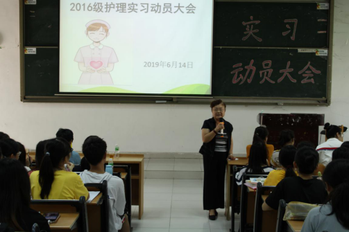 随后办公室主任黄洛莹老师、16级辅导员陈壮艳老师对实习手册的填写、实习制度、实习时间以及注意事项做出了讲解和安排。黄老师强调,实习是教育部、省卫生厅针对本专业毕业生的要求,只有经过要求时间的实习并合格才能毕业;在实习过程中,要注意各科室安排是否符合相关要求以及与毕业论文相关等等事项。最后,两位老师祝愿各位同学顺利完成实习!