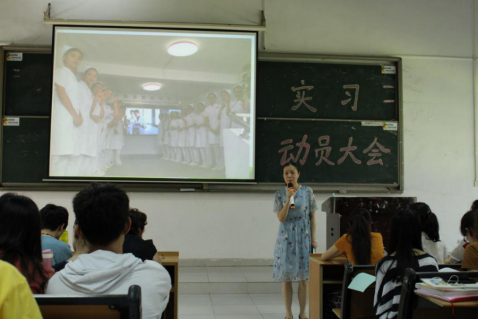 紧接着,王秀岚院长给同学们作实习动员,她从实习过程中的学习、安全、纪律、生活等方面给同学们指明方向,希望同学们能够传承新华护理师兄师姐们的优秀传统,认真学习,以礼待人,努力把握实习岗位中的机会,并预祝同学们实习工作顺利。