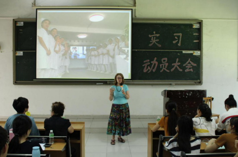 宋建玲教授教导同学们在工作中要注意消毒隔离以及无菌操作,保护好自身安全。实习期间要不断地学习,扎实理论知识和技能操作技术,为护士资格考试和毕业论文做充足的准备。